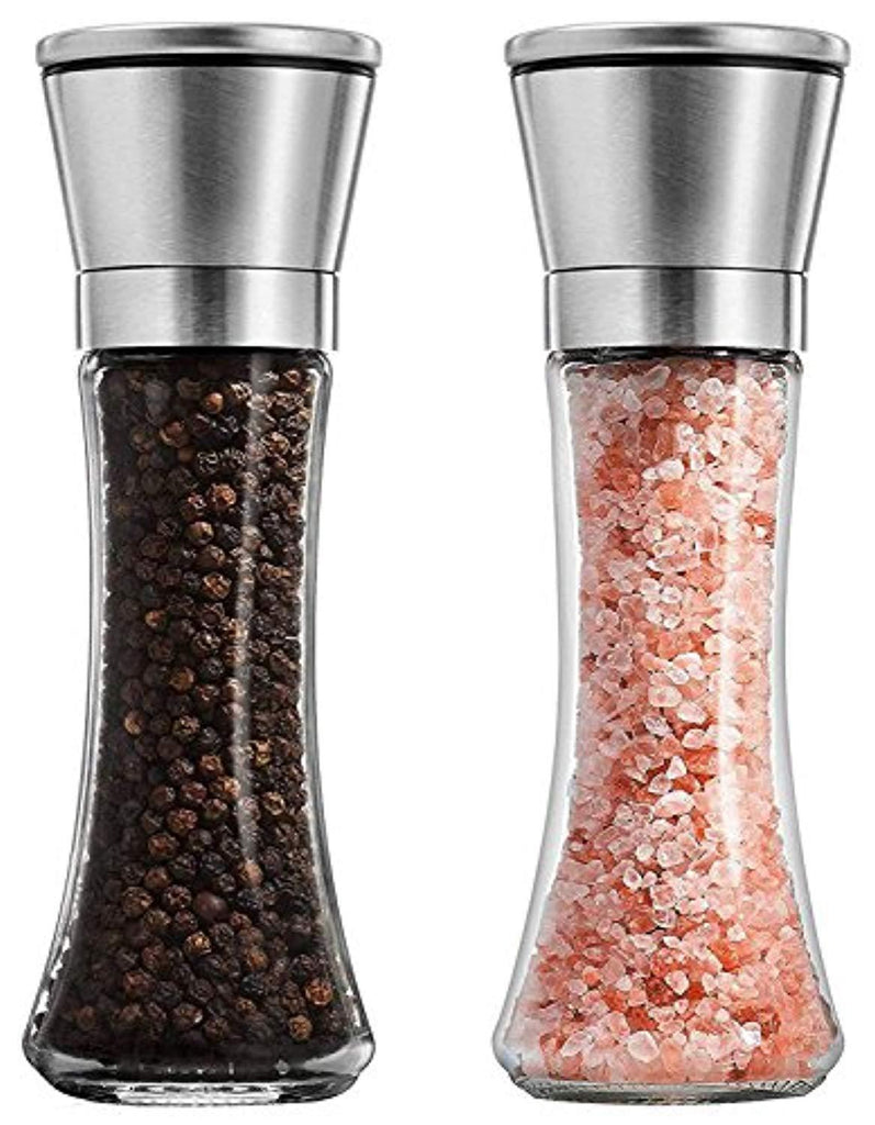 K Basix Salt and Pepper Shaker Grinder Set of 2-6 Oz Capacity, Stainless Steel Top and Tall Glass Body