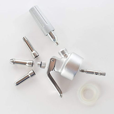 STAINLESS STEEL WHERE IT COUNTS. The piston, piercing needle and nozzle adaptor are all made from stainless steel which provides a reliable and 'built-to-last' strength. You wont see visible wear and flaking on the stainless steel piston after just a few uses as you do with an aluminum piston. The 3 decorating tips are also made from stainless steel. The canister is made from high-grade aluminum, making it durable and easy to handle.