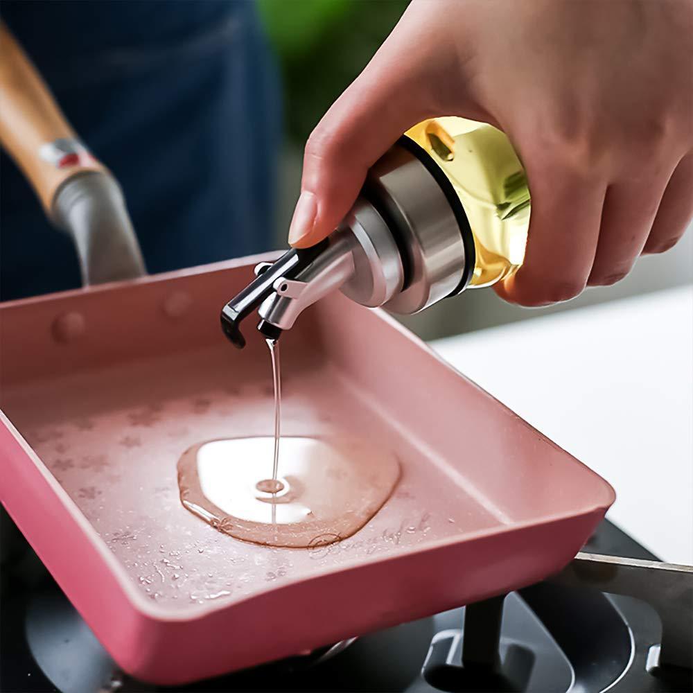 • The glass olive oil bottle rightly controls oil use, which drastically reduces caloric intake and excess fat gain.