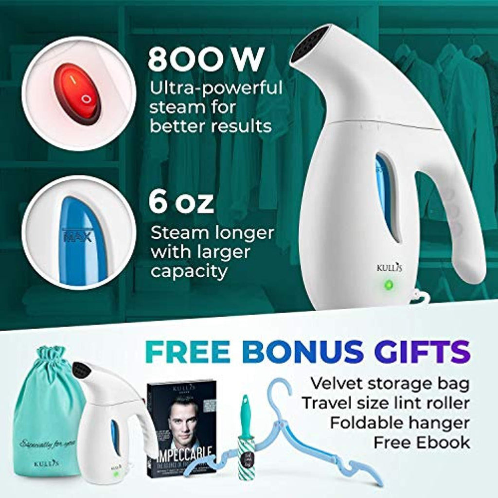 ๐๐ A STEAMER FOR CLOTHES THAT IS WORTH HAVING - Between business meetings and dinner dates, you donโt have time to change clothes. Use KULLISโ handheld mini travel fabric garment steamer for an instant refresh. Compact, lightweight, and travel friendly, yet powerful enough to beat any wrinkle in record time! Unlike other portable wrinkle remover garment steamers, its large 6oz capacity heats up in 60 seconds, giving you 10-12 minutes of steady steam to refresh any fabric.