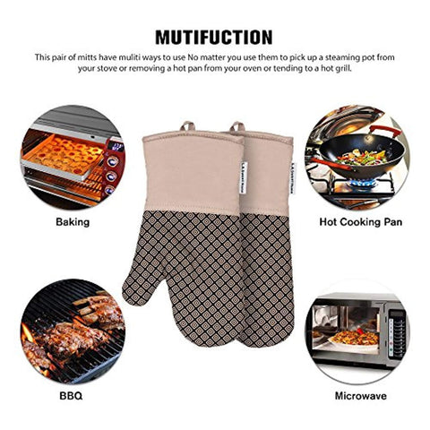 • EASY TO CLEAN & STORE – Each pair of oven gloves is extremely easy to clean, super durable and features a cotton loop inside so they can be hung in a cabinet, near the grill or in a pantry. Wash with warm, soapy water in between uses.