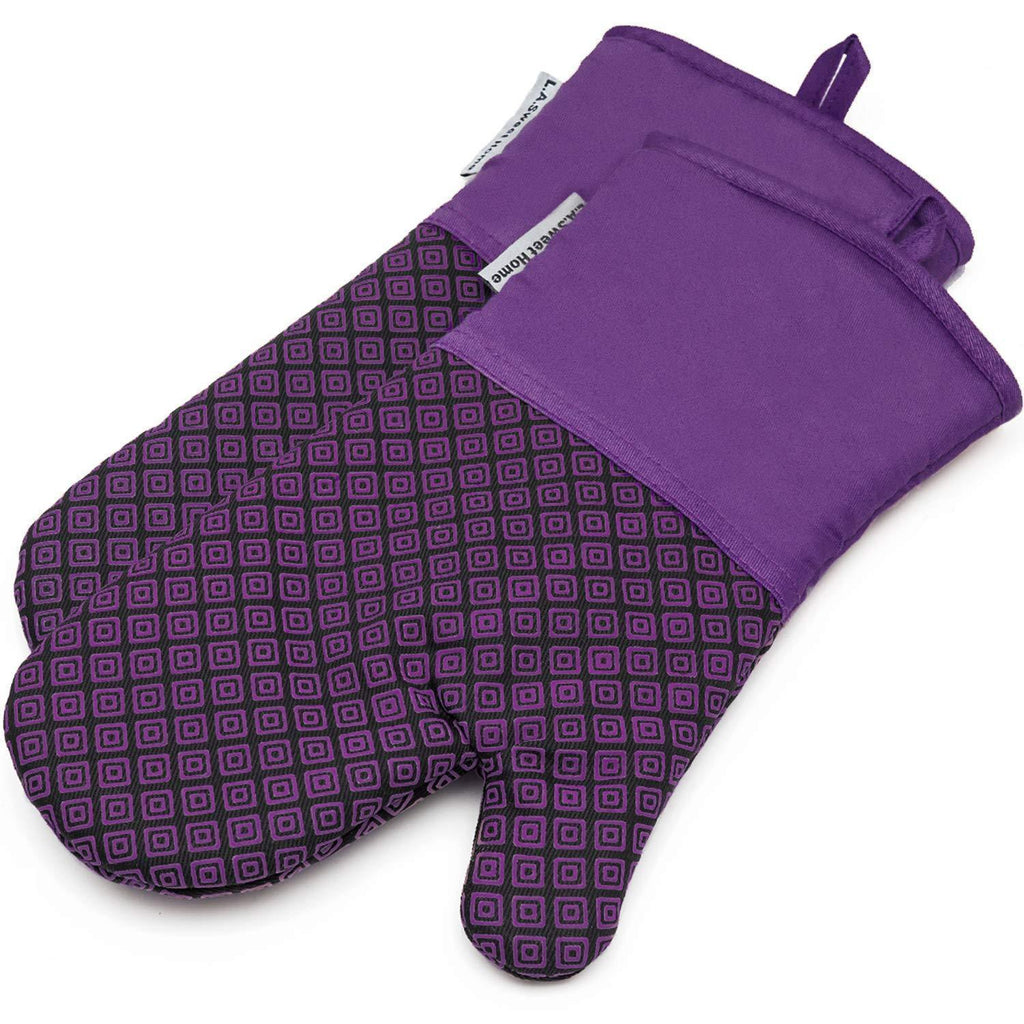 LA Sweet Home Silicone Oven Mitts Greek Key Pattern Heat Resistant Potholders Cooking Gloves Non-Slip Barbecue Gloves, Pot Holders as Gift 1 Pair (Red)