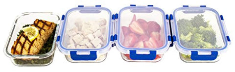 • PERFECT SIZE & BEST VALUE –8 Piece Set 4 glass food storage containers and 4 snap locking lids, we guarantee we have the best quality products at the best price. - 32 Oz (950 ML), 20 cm x 15 cm x 8 cm easy for meal prepping, and travel well.