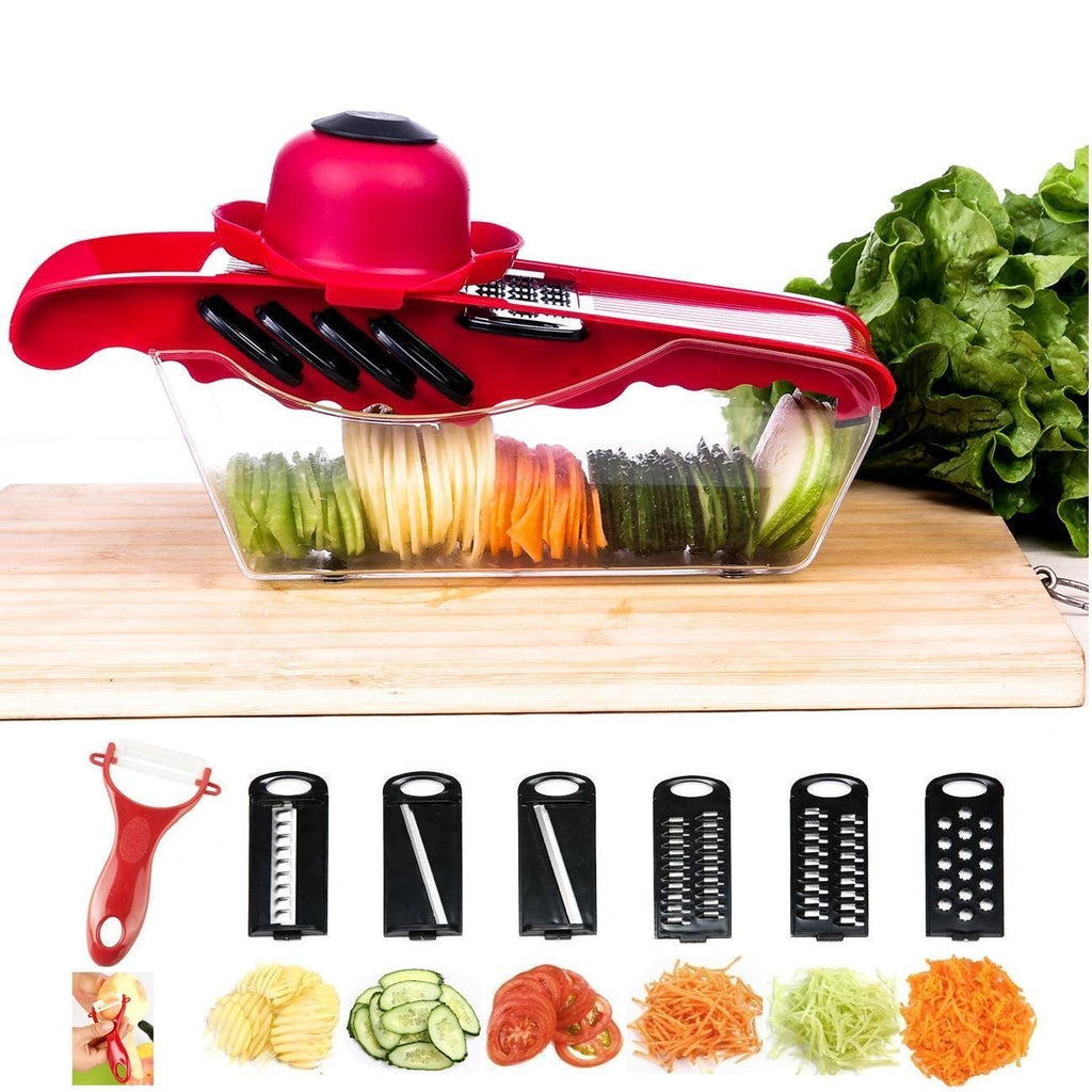 Mandoline Vegetable Slicer Cutter Chopper,JungleArrow 6 in 1 Interchangeable Blades with Peeler with Food Catch Tray by unknown