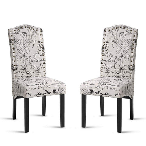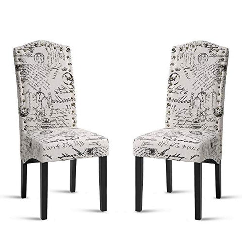 Merax Script Fabric Accent Chair Dining Room Chair with Solid Wood Legs, Beige,Set of 2