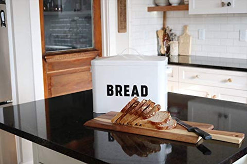 DURABLE ALL METAL CONSTRUCTION featuring a clean white powder-coating with big bold BREAD lettering. Built to last with thick solid metal, just like the vintage porcelain enamel bread boxes from years ago.