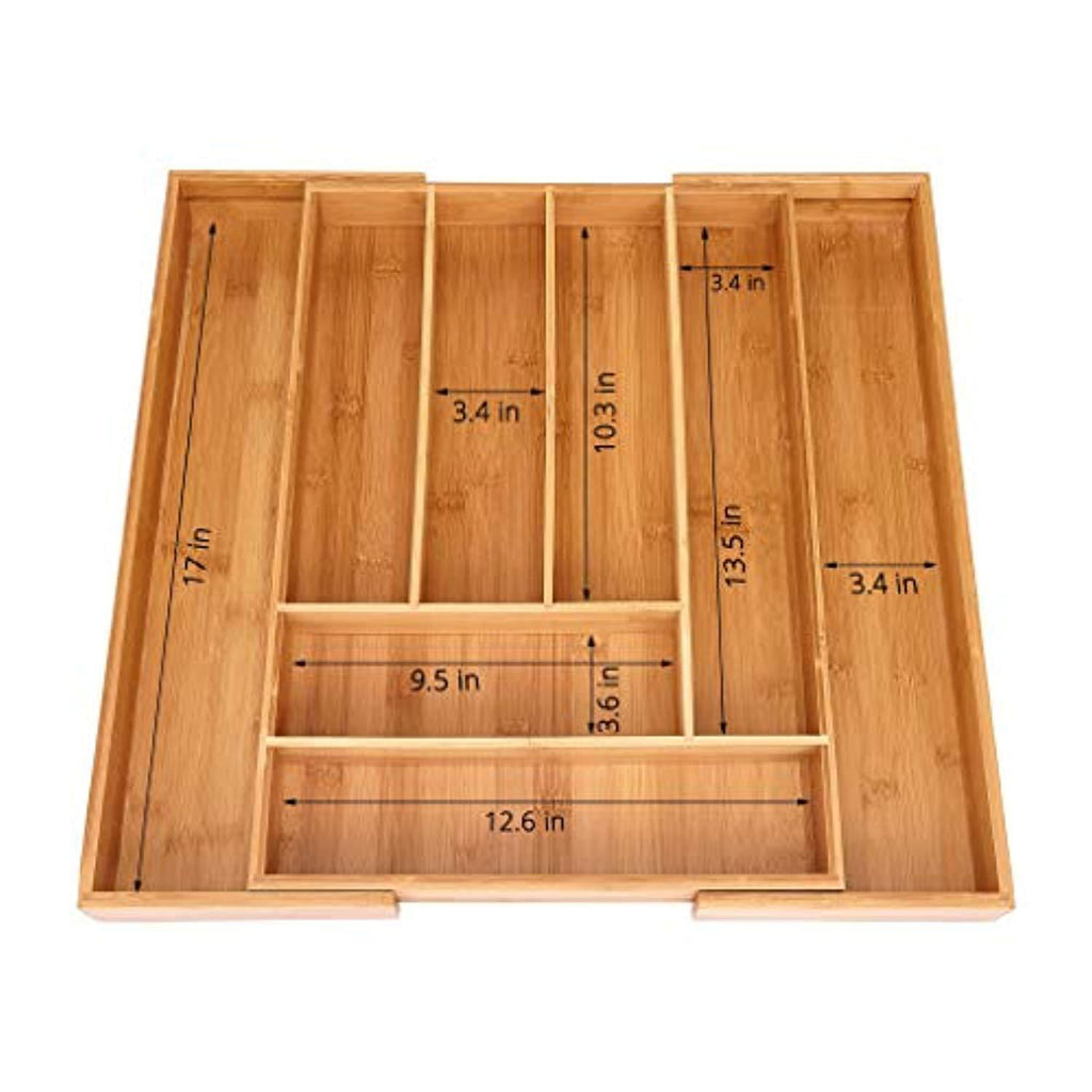 The utensil organizer is composed of many size compartments to fit all size utensils. Durable and ready to last you a lifetime, enjoy the bamboo expandable cutlery tray in your drawer and keep things neat.