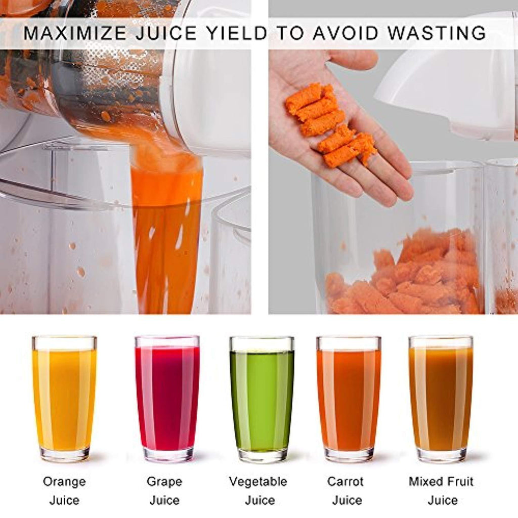 • 【Higher Nutritional Value】: A low-speed juicing system that rotates at 80 RPM keeps nutrients from being destroyed as opposed to common centrifugal juicers.