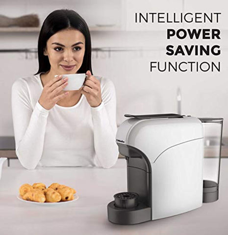 ☕ LARGE CAPACITY SMALL FOOTPRINT – With a small footprint taking up minimal counter space but a large water tank which is detachable, easy to clean and dishwasher safe, holds 27 fl oz/0.8 L water.