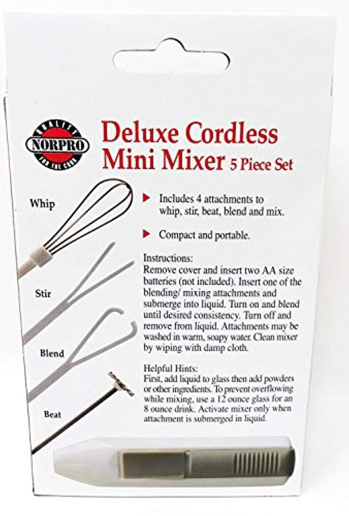 NorPro Mini Hand Mixer Set 5 Piece Electric Milk Portable Cordless Whipper Mixer Blender Frother, Battery Opperated + 10" High Temperature Silicone Spatula