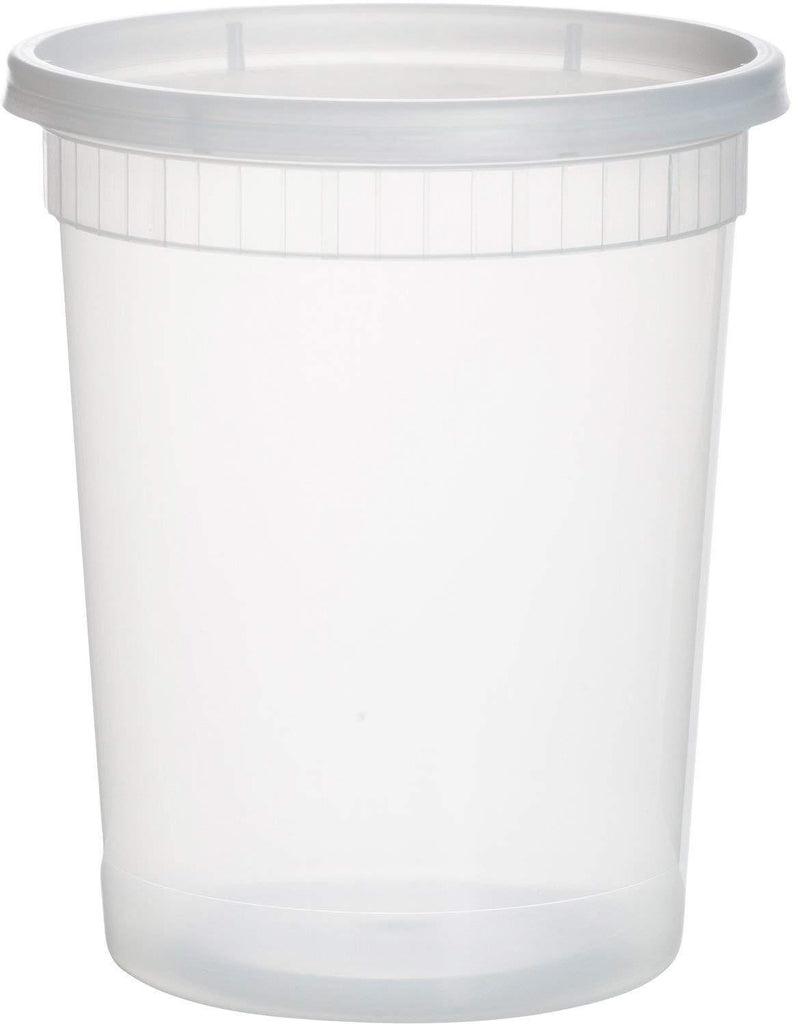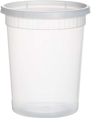This 24 pack of 32 oz round translucent Large plastic containers have easy to seal lids that are ideal for homes, delis and restaurants.