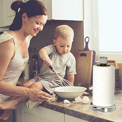 STABILITY - Our Paper Towel Stand's base has just enough weight to stay stable on your kitchen countertop but not be a hassle to lift and move. Will not stumble if pushed or pulled.