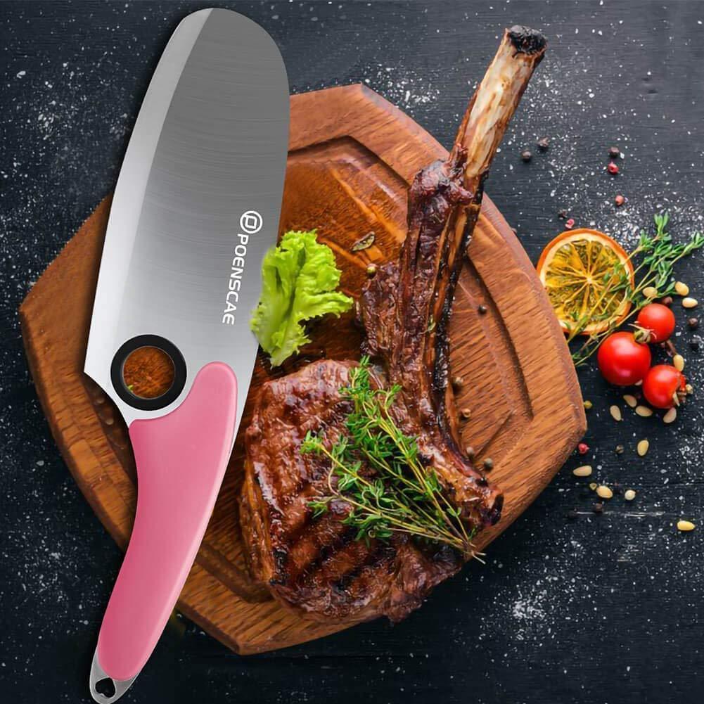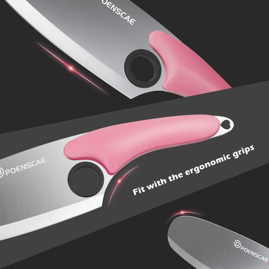 POENSCAE Chef Knife,Kitchen Knife 5.8 Inch,German Stainless Steel Knife with Sharpener,Unique Anti-Slip Hole Design