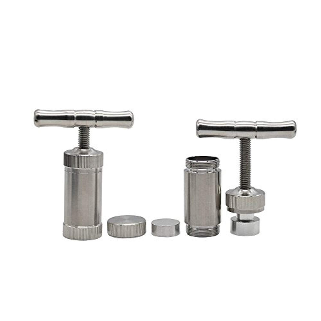 Pollen Press Presser Tool, with Gift Box Hard Metal Stainless Steel T Shape Handle Heavy Duty Small Compressor CNC 4 Piece Silver Color