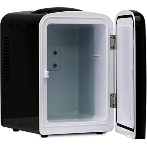 Portable 6 Can Mini Fridge Cooler & Warmer, 4L Capacity, Fully Insulated, Thermoelectric, 110V & 12V AC/DC Power for Home, Office, Car, RV,