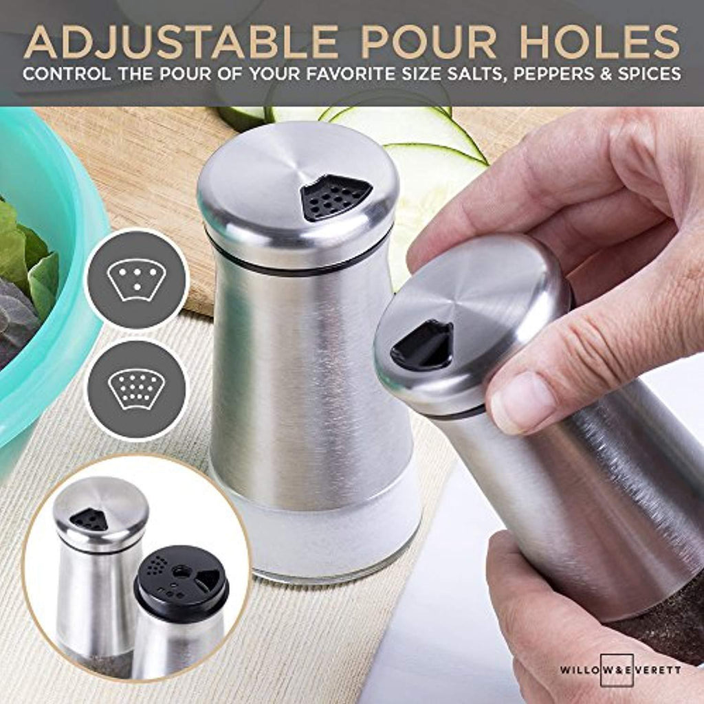 Premium Salt and Pepper Shakers with Adjustable Pour Holes - Elegant Stainless Steel Salt and Pepper Dispenser - Perfect for Himalayan, Kosher and Sea Salts - Spices