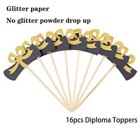 Package includes: 16pcs diploma toppers, 16pcs gold 2019 number toppers, 16pcs mortarboard toppers. These cupcake toppers are assembled and can be used directly