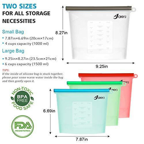 • ❖『PROFESSIONAL CUSTOMER TEAM』: There are 6 reusable ziplock bags in one pack, each storage bag is 8.23" x 9.02". JONYJ customer service team is committed to 100% satisfaction, please rest assured, if you have any questions, please feel free to contact us