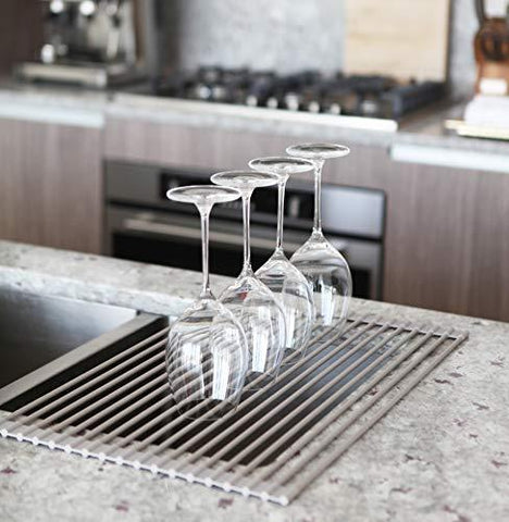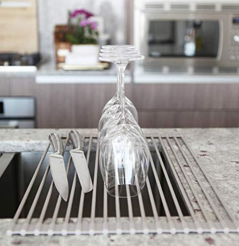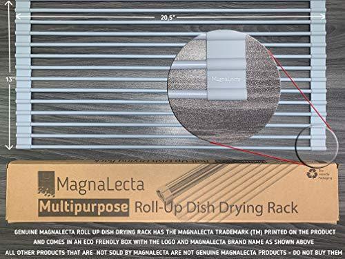 Roll Up Sink Drying Rack by MagnaLecta – Multipurpose Over the Sink Silicone Coated Stainless Steel Self Draining Roll-Up Dish Rack Holder, Foldable, Heat Resistant, Easily Adjustable(Warm Gray,Large)