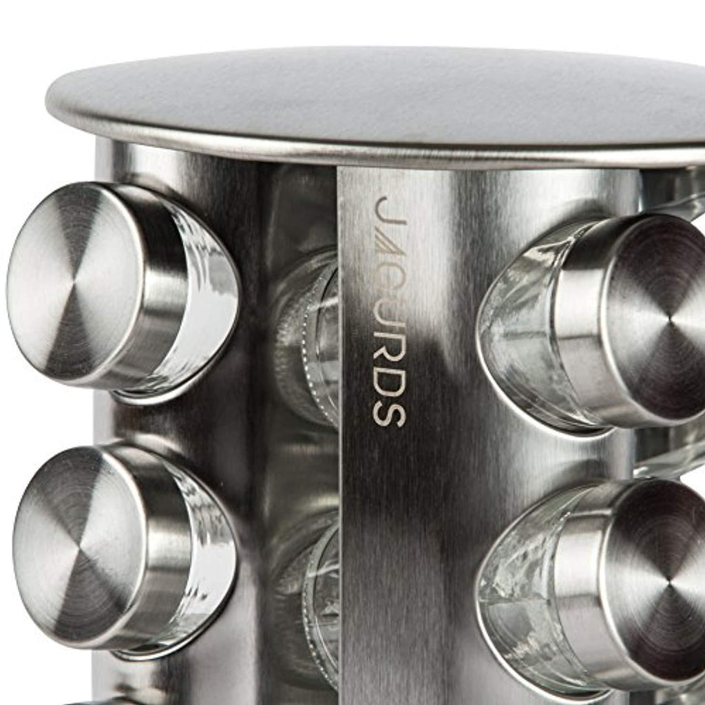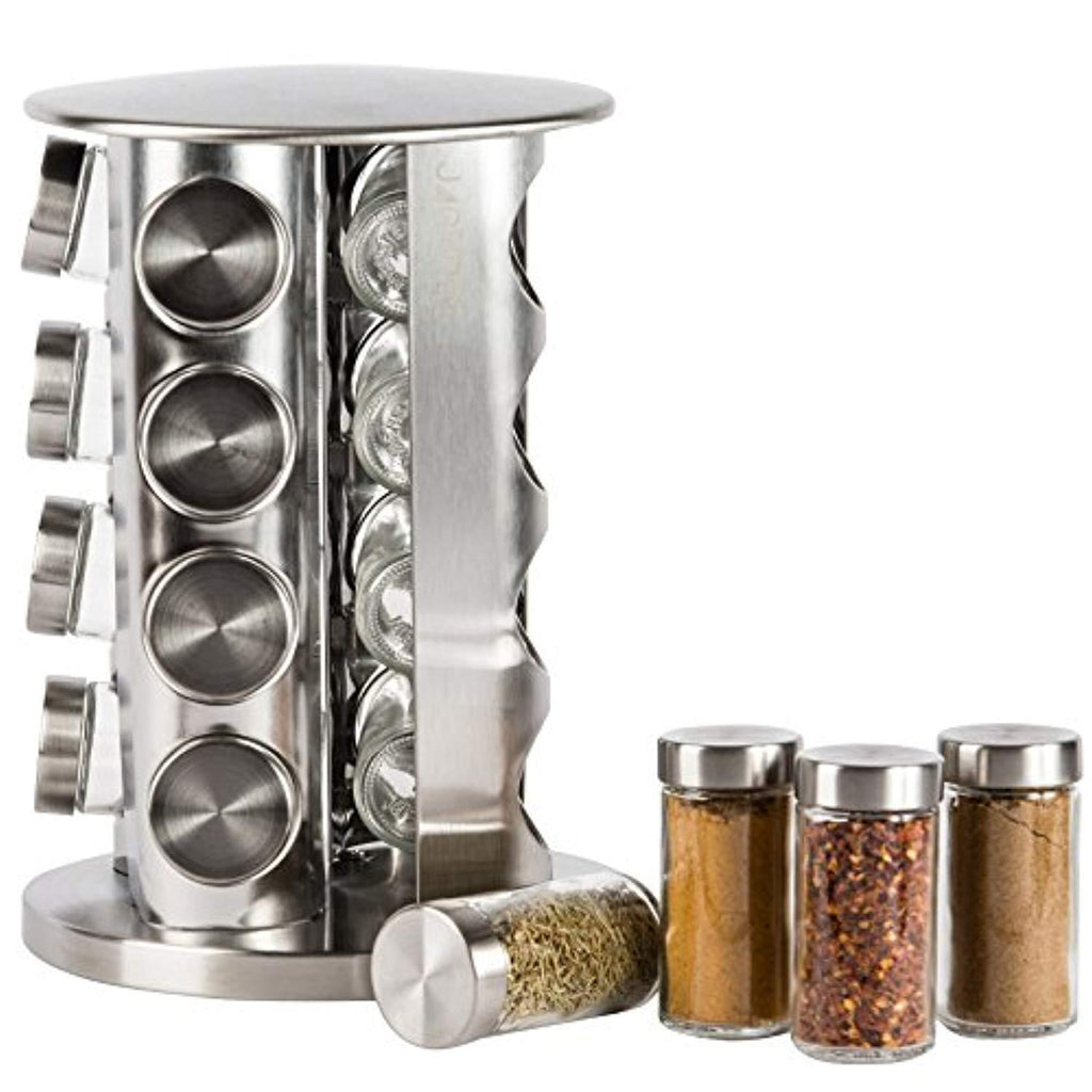 PREMIUM QUALITY and ELEGANT DESIGN. The stylish metallic finish of this revolving spice rack will surely add glamour to your kitchen counters and savory flavor to your food. Made of 100% Stainless Steel that is rust-proof. This durable spice and seasoning rack is built from environmentally friendly food grade materials that assures safety and will last through a lifetime. (spices not included)