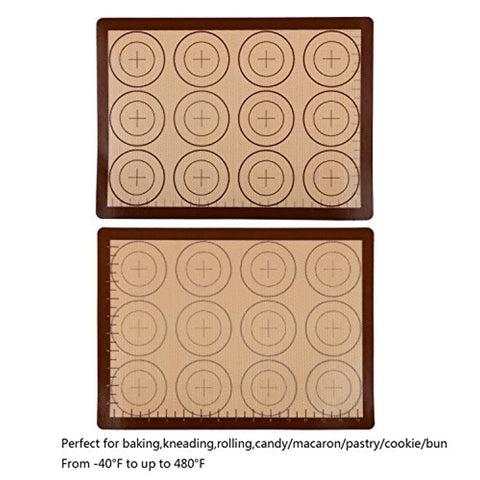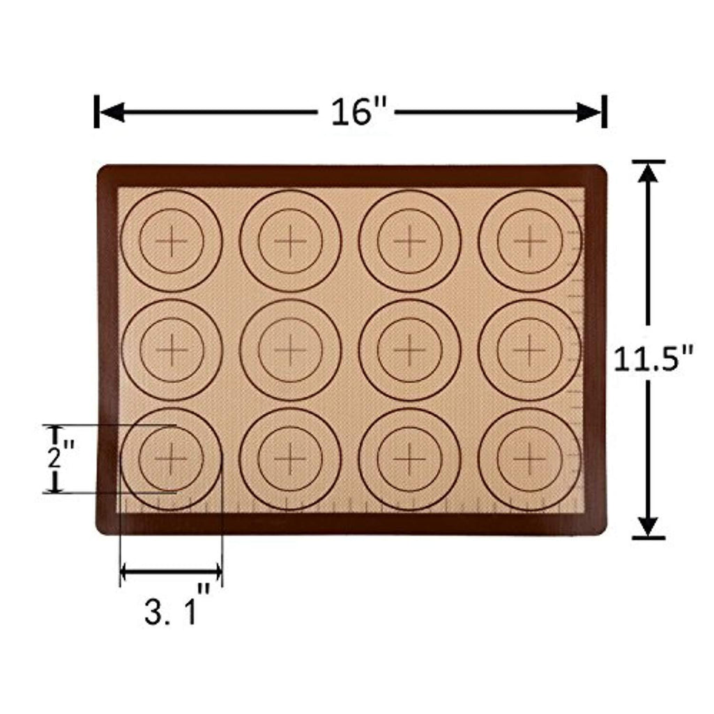 Seamersey Silicone Baking Mat Sheet Set - Set of 3 Sheet - Non-Stick Silicon Liner for Bake Pans & Rolling with Measurements - Macaron/Pastry/Cookie/Bun/Bread Making(16" x 11.5", Brown)