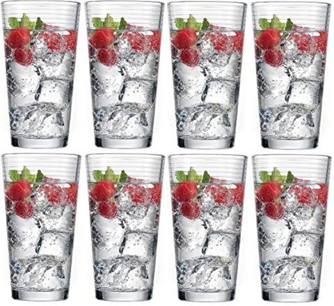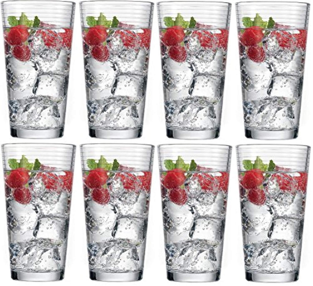 Durable 16-piece set includes 8- 17oz highball and 8- 13oz DOF drinkware set is perfect for casual or formal use Layers beautifully with a variety of dinnerware and table settings.