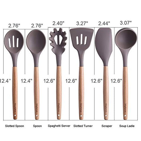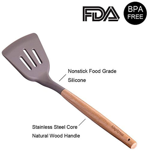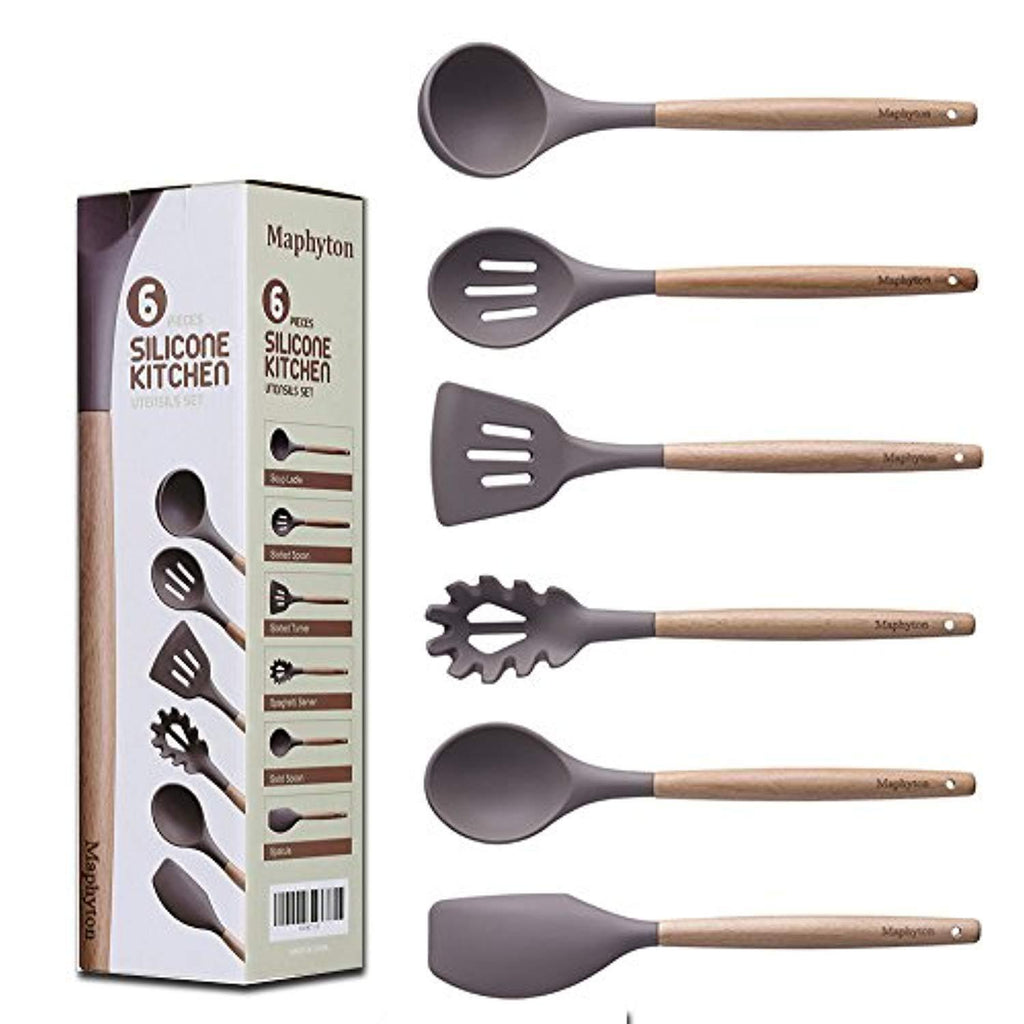 Silicone Cooking Utensils, 6 Pieces Nonstick Kitchen Tool Set BPA Free with Natural Acacia Hard Wood Handle by Maphyton