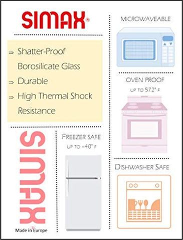BOROSILICATE VS. SODA-LIME GLASS: Soda-lime glass, used by many of today’s most popular glass cookware manufactures, works great to prevent breakage from mechanical stress. But unlike Borosilicate glass, it is not so great for thermal shock resistance and withstanding extreme temperature changes. That’s why Simax products are made from genuine, laboratory-grade Borosilicate glass, so you can cook and store your food without worrying about exploding dishes.