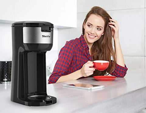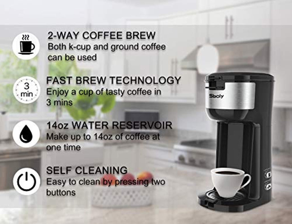 Single Serve K Cup Coffee Maker Brewer for K-Cup Pod & Ground Coffee, Compact Design Thermal Drip Instant Coffee Machine with Self Cleaning Function, Brew Strength Control by Sboly