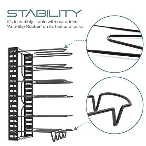 ★ HEAVY-DUTY CONSTRUCTION – Our pan rack has been crafted using premium-quality and incredibly durable metal, so it can be filled without shaking or bending. Its also incredibly stable with our added anti-slip rubber on its feet and racks.