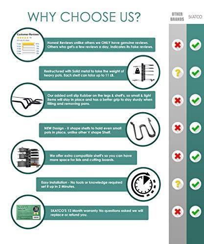 ★ SATISFACTION GUARANTEED – This item comes with SKATCO’S WARRANTY. If you’re not 100% satisfied with your pot organizer, simply contact our customer support within 1-year of purchase for a new replacement or full refund. No questions asked!