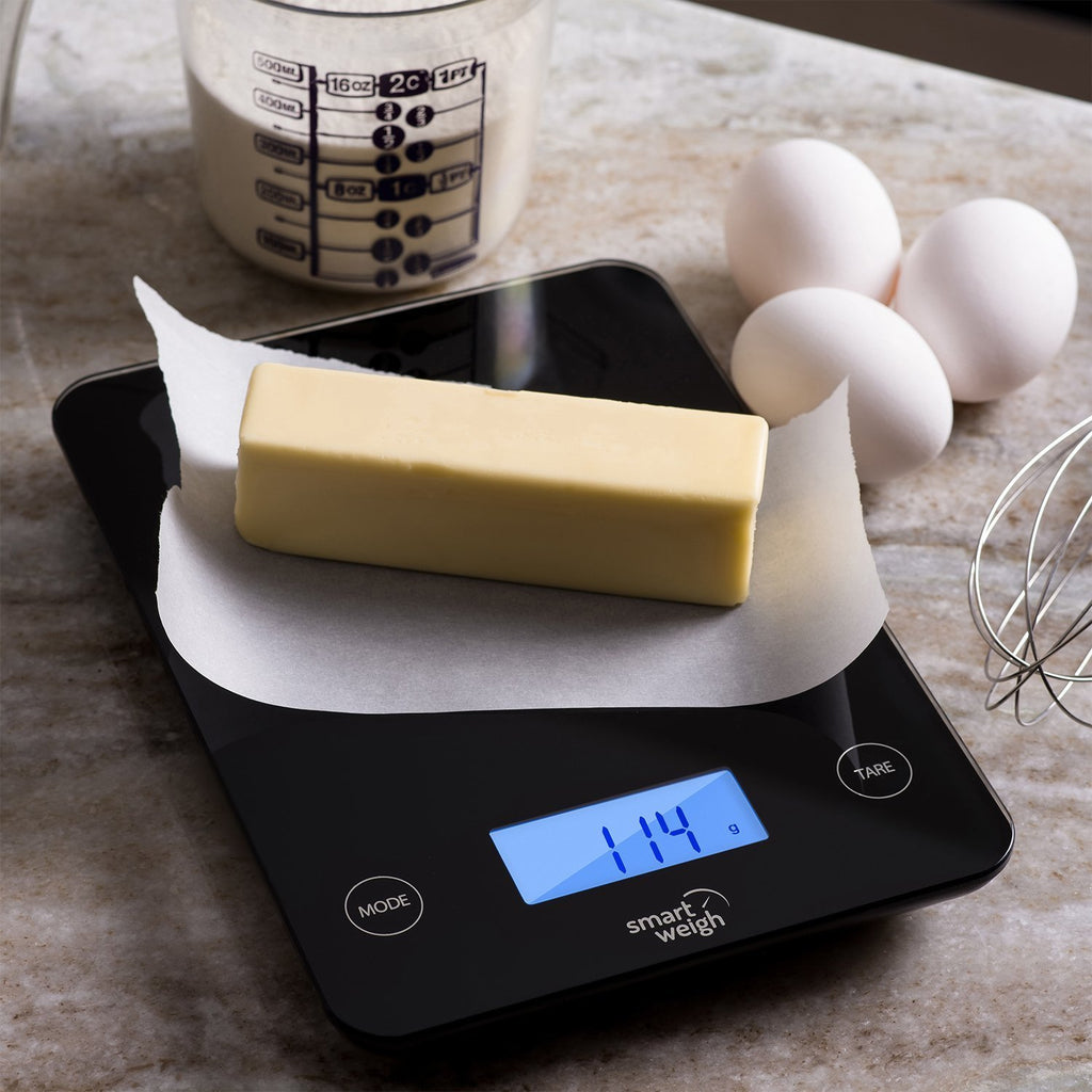 • BEAUTIFULLY DESIGNED- This kitchen scale has a professional and sleek design, making it perfect for any home. It is compact enough to leave out on the counter, but also will not take up much space should you choose to store it elsewhere in your home.