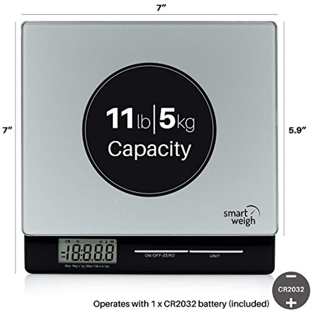 Smart Weigh Professional USPS Postal Scale with Tempered Glass Platform, Multiple Weighing Modes and Tare Function, Silver Shipping Scale, Platform Scale, 11lb/ 5kg