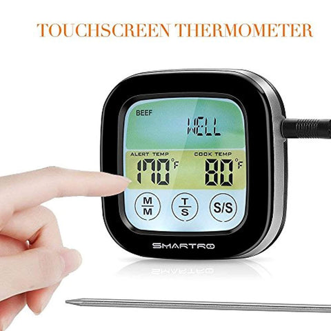 TOUCH SCREEN & LCD BACKLIGHT: Sensitive touchscreen design makes the digital meat thermometer easier to operate. It has a backlit LCD displays which make it convenient to use at night and helps you get a quick reading at a glance from any angle.
