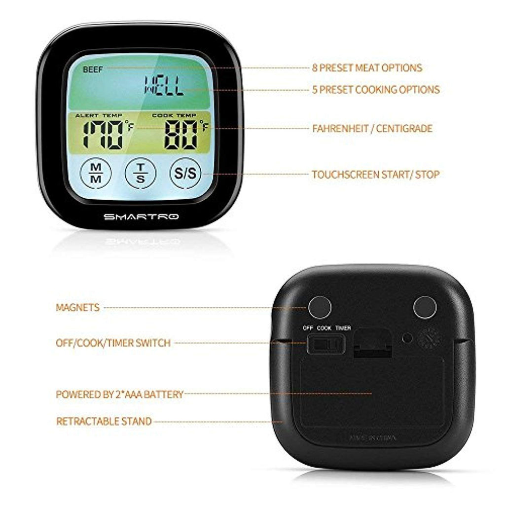 SMARTRO ST59 Digital Meat Thermometer for Oven Kitchen Grill Food Smoker Cooking with 2 Probes and Timer