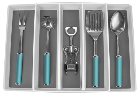 • UTENSIL FLATWARE DRAWER ORGANIZER (5 Sections) — Keeps your cutlery neatly arranged for storage and easy access within drawers— Features 5 sections, ideal for silverware, serving utensils, and various kitchen gadgets