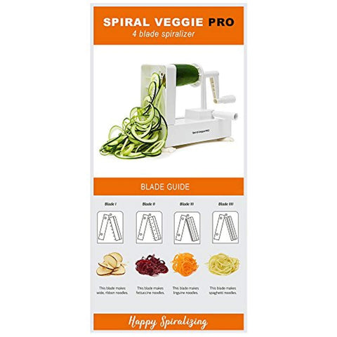 Spiralizer Vegetable Slicer - Best Veggie Zoodle Spiral Maker, Zucchini Pasta Noodle Spaghetti Maker for Low Carb Meals (4 Blade)