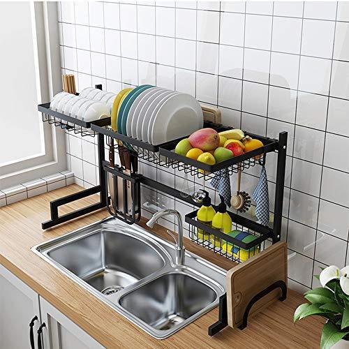Stainless Steel Black Dish Drying Rack Over Kitchen Sink, Dishes and Utensils Draining Shelf, Kitchen Storage Countertop Organizer, Utensils Holder, Kitchen Space Saver (For Sink ≤ 32.5 inch)