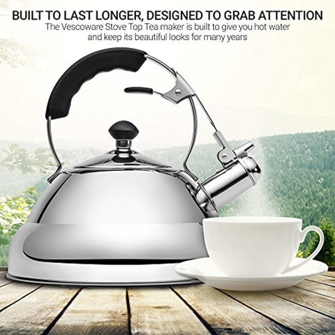 • ★ TASTE THE TEA, NOT THE KETTLE: The Vescoware Stove Top Tea maker is built to give you hot water that taste exactly as it is meant to be – thanks to the use of the highest quality food Grade metals with no coating whatsoever.