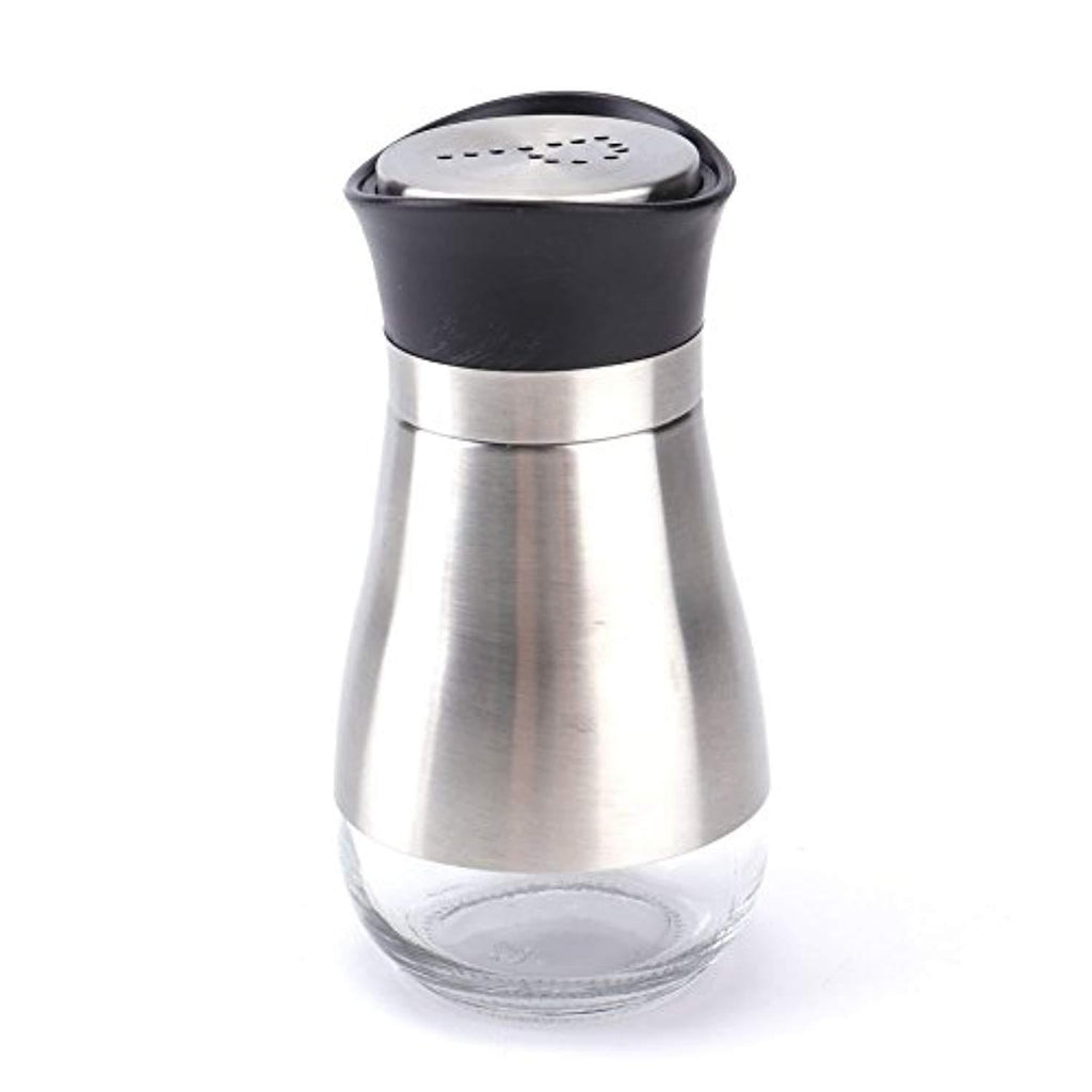 Made from high quality stainless steel with a glass bottom that helps to verify when shakers are getting low, avoiding the hassle of constantly removing the cap.Also, stainless steel cover glass body prevents shattering.