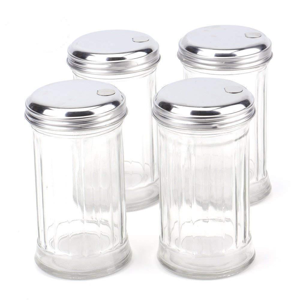 Tebery 4 Pack Stainless Steel Flip Cap Glass Sugar Dispenser/Pourer/Shaker,12 ounce