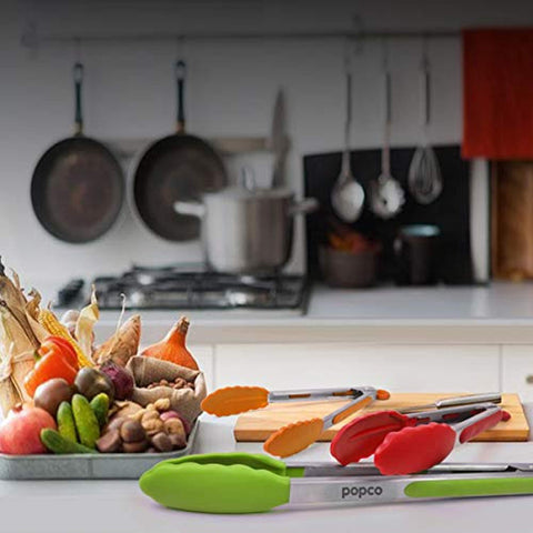 ★ ERGONOMICALLY DESIGNED FOR GREATER COMFORT; POPCO tongs are manufactured with a soft silicone pads that allows a safe handling of food without the risk of them bending or breaking. The set of 3 sizes - Small 7", Medium 9", Large 12" is perfect for all your needs. This set of 3 sizes - Small 7", Medium 9", Large 12" is perfect for all your needs.