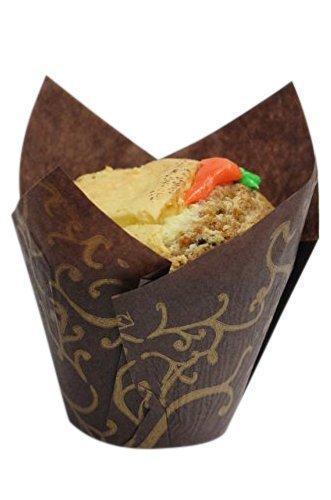 Decony Large brown Tulip Cupcake Liners Muffin Baking cups Paper Liners - Great for large cupcakes and muffins - Appx. 100 Ct. Diameter: 2" bottom Height: 2 3/4-4