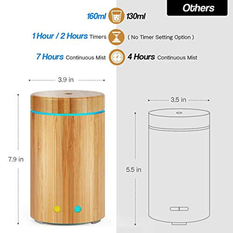 URPOWER Real Bamboo Essential Oil Diffuser Ultrasonic Aromotherapy Diffusers Cool Mist Aroma Diffuser with Adjustable Mist Modes, Waterless Auto Shut-Off, 7 Color LED...