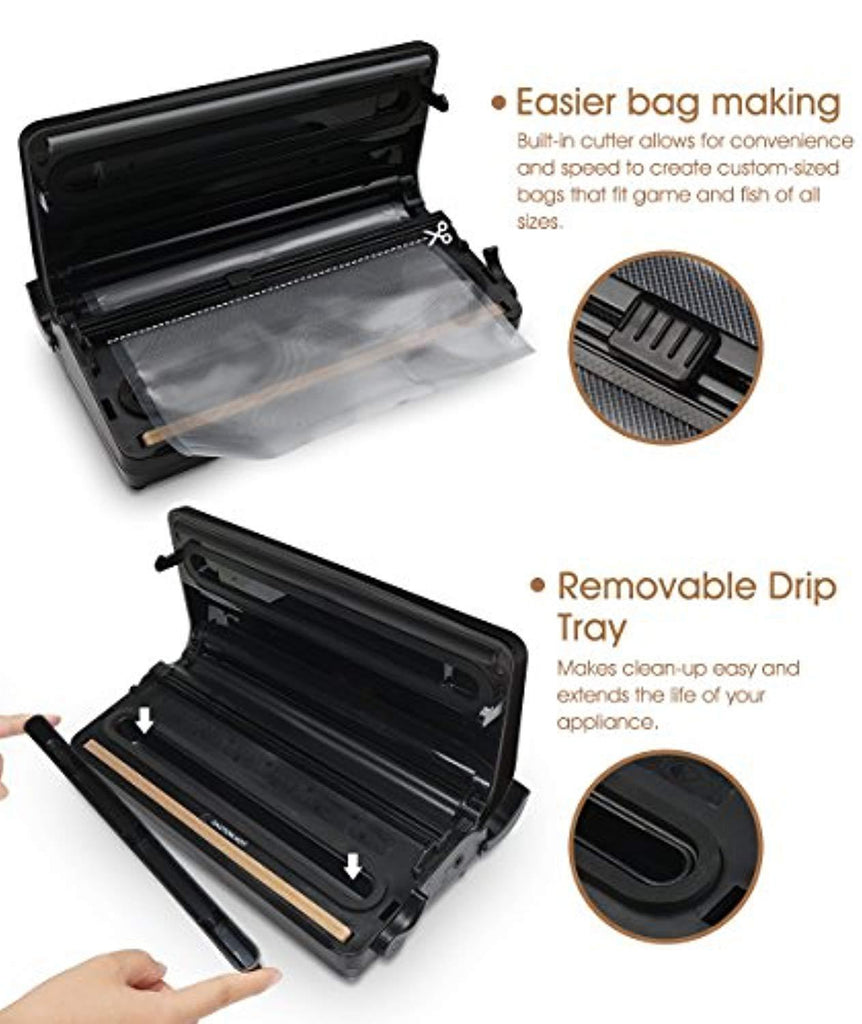 Multiple Packing : Convenient, practical and highly efficient. The vacuum sealer has a max. working width of 30cm, which enables the vacuum sealer to pump two packs or more together at the same time. The heat-resistant sealing strip can work for 40 times continuously without any damage to your machine.