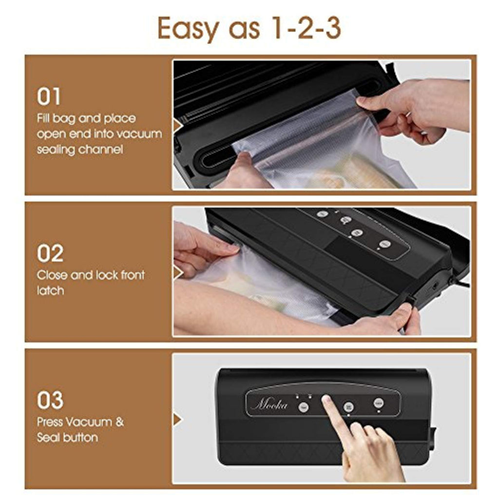 Vacuum Sealer, Mooka 4-in-1 Sealing System with Cutter, 10 Sealing Bags (FDA-Certified), Multi-use Vacuum Packing Machine and Pumping Hose, Dry & Moist Food Mode for Food Preservation (TVS-2150)