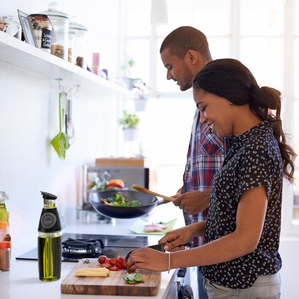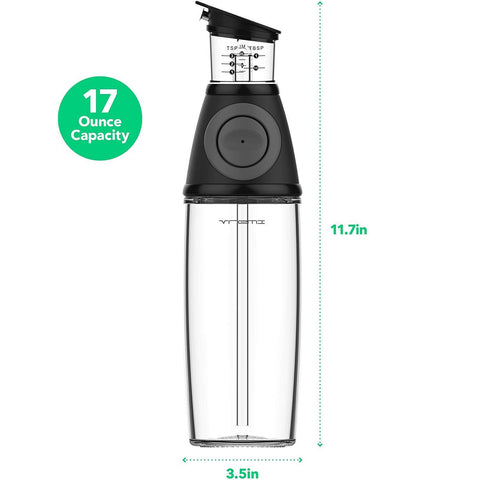 OIL BOTTLE with PRECISE MEASURING LABELS - 17 ounce cooking oil dispenser for kitchen with teaspoon, tablespoon, and milliliter marks on pourer top to mix and measure olive oil and vinegar. Perfect for salad dressing or for drizzling bread with flavor