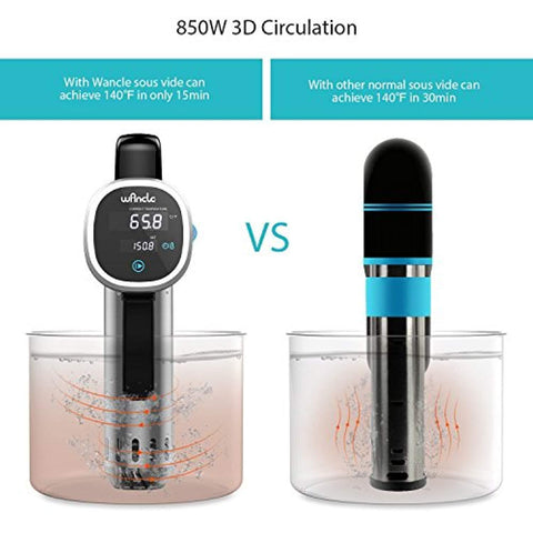 Wancle SVC001 Sous Vide Cooker, Thermal Immersion Circulator, with Recipe E-Cookbook, Accurate Temperature Digital Timer, Ultra-Quiet, 850 Watts, 120V, Stain