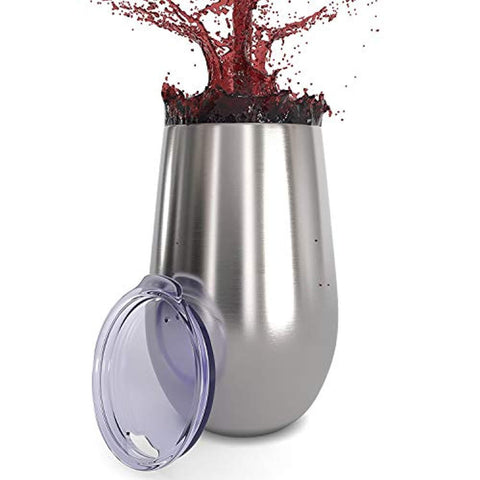 Wine Tumbler - Set of 2 - Stainless Steel Double Walled Vacuum Insulated Stemless Wine Glass Cup Travel Tumbler With Lid -12 Ounce