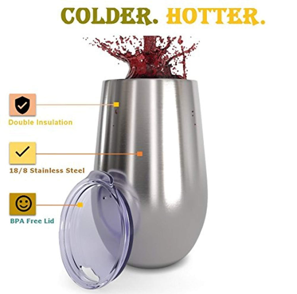 VACUUM INSULATED - KEEPS DRINKS HOT OR COLD LONGER : Double Walled Vacuum Insulation Keeps Your Drinks Warm or Cold for Longer Time. Made of advanced stemless glass technology to keep your drinks warm for a longer time in a cold day, providing you a warm winter. Stemless metal cups are ideal for coffee , Tea, Champagne , Cocktails